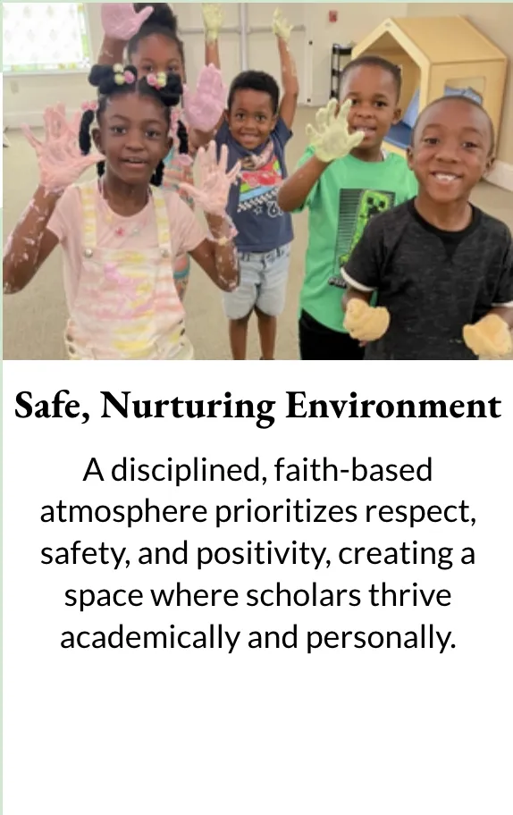 A disciplined, faith-based atmosphere prioritizes respect, safety, and positivity, creating a space where scholars thrive academically and personally.