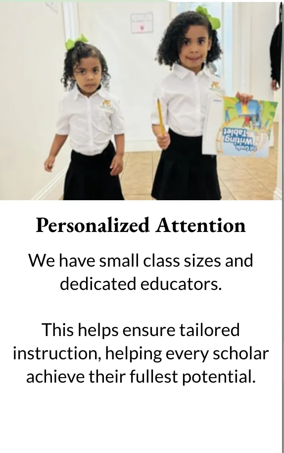 Small class sizes and dedicated educators ensure tailored instruction, helping every scholar achieve their fullest potential.