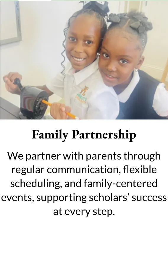 We partner with parents through regular communication, flexible scheduling, and family-centered events, supporting scholars’ success at every step.